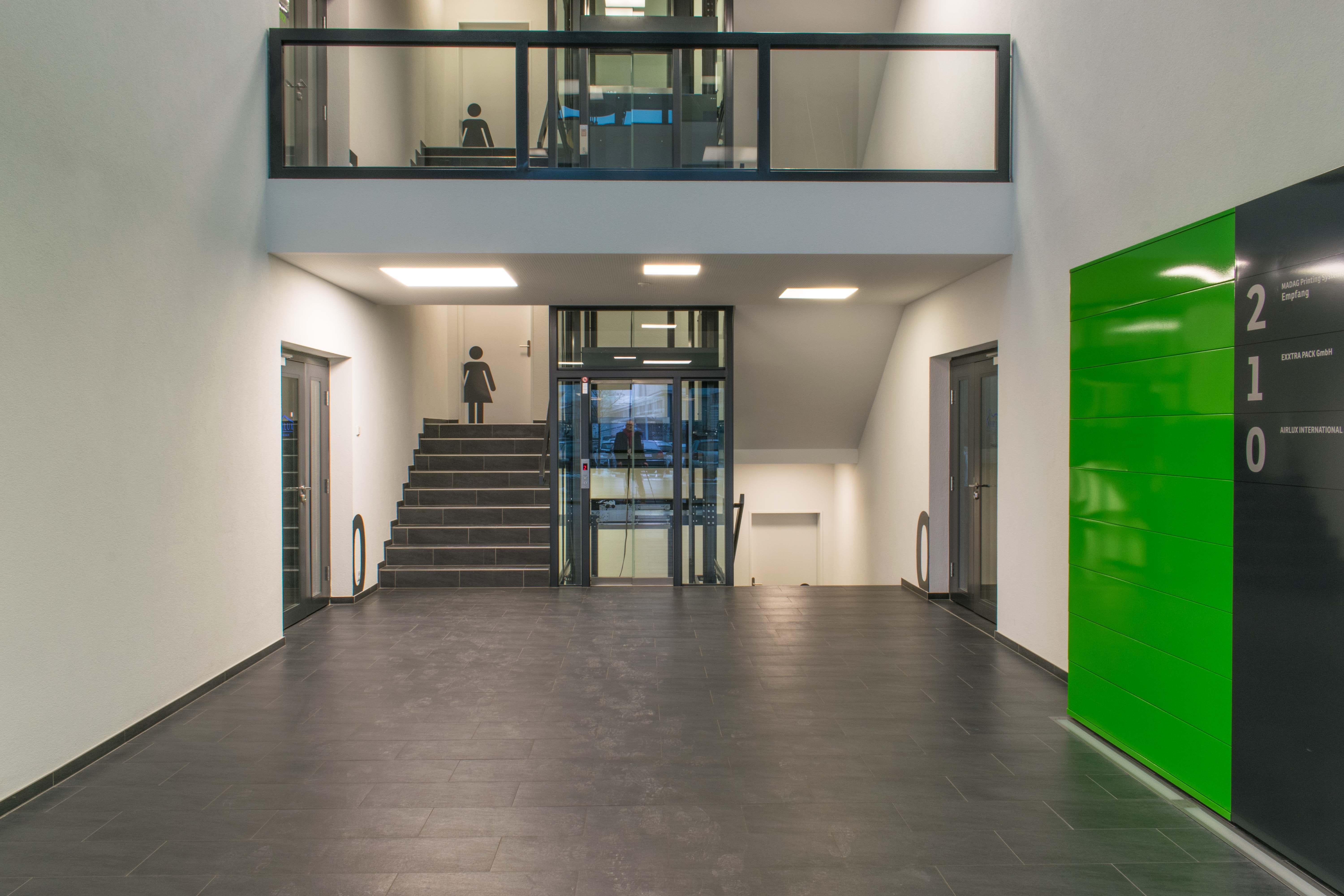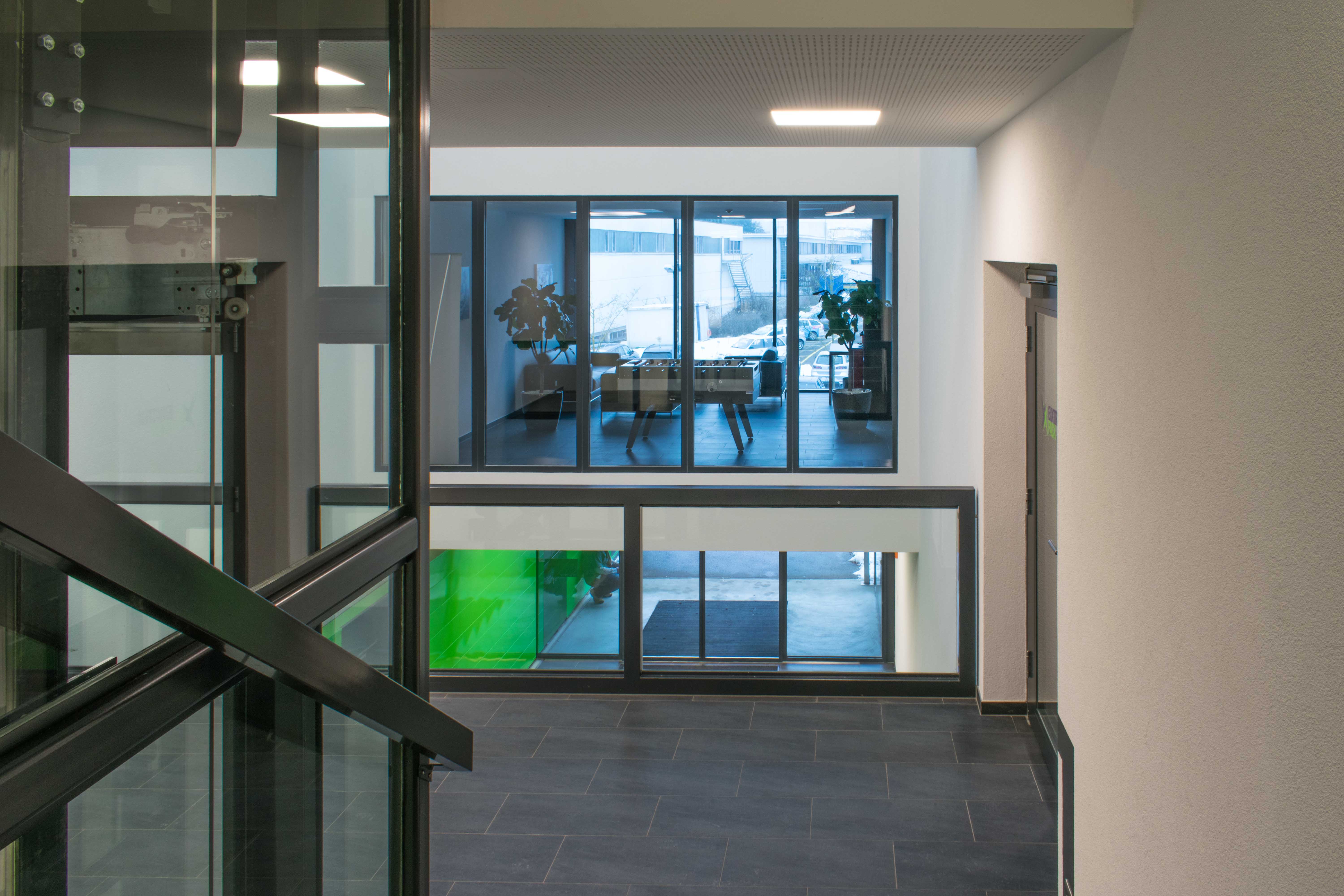Die Gewerbefläche ist optimal erschlossen und der Warenumschlag stufenlos gegeben. Der grosszügie Umschlagplatz ist mit Laderampe und Hebebühne ausgerüstet sowie einem Warenlift zur Bedienung des Untergeschosses. Die Gewerbefläche verfügt über eine kontrollierte Lüftung / Heizung und ist mit technischen Anschlussmöglichkeiten ausgerüstet. Bodenbelastung 1500 Kg/m2, Hallenhöhe 4.30 m. Sehr helles, freundliches Inneres mit grosszügigen Fensterfronten und elektronisch gesteuertem Beschattungssystem. Optimale Raumnutzung dank grosszügigem Stützraster gewährleistet.