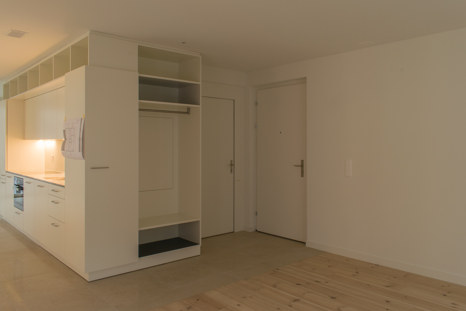 Bei der Raumeinteilung wurde darauf geachtet, dass mit grossen Schiebetüren eine flexible Nutzung einfach möglich ist. Der eigene Waschturm mit Tumbler in der Wohnung gibt Ihnen zusätzliche Freiheit.
