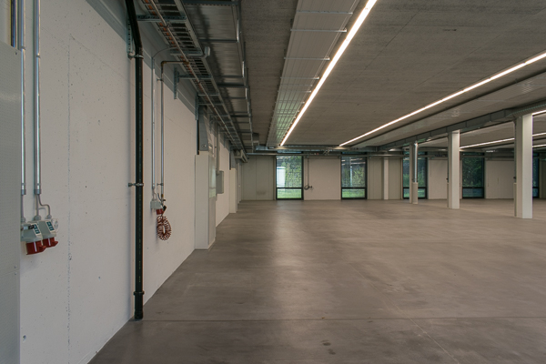 Die Gewerbefläche ist optimal erschlossen und der Warenumschlag stufenlos gegeben. Der grosszügie Umschlagplatz ist mit Laderampe und Hebebühne ausgerüstet sowie einem Warenlift zur Bedienung des Untergeschosses. Die Gewerbefläche verfügt über eine kontrollierte Lüftung / Heizung und ist mit technischen Anschlussmöglichkeiten ausgerüstet. Bodenbelastung 1500 Kg/m2, Hallenhöhe 4.30 m. Sehr helles, freundliches Inneres mit grosszügigen Fensterfronten und elektronisch gesteuertem Beschattungssystem. Optimale Raumnutzung dank grosszügigem Stützraster gewährleistet.